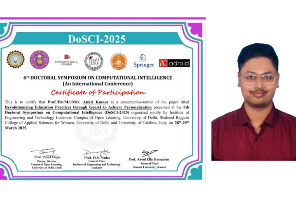 Ankit Kumar published and presented an international conference paper titled “Revolutionizing Education Practices Through Gen-AI to Achieve Personalization”