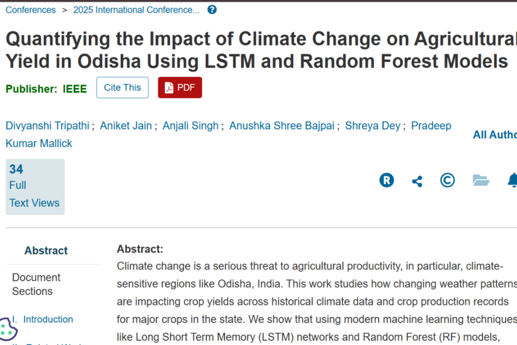 Anushka Shree Bajpai’s research paper titled “Quantifying the Impact of Climate Change on Agricultural Yield in Odisha Using LSTM and Random Forest Models”