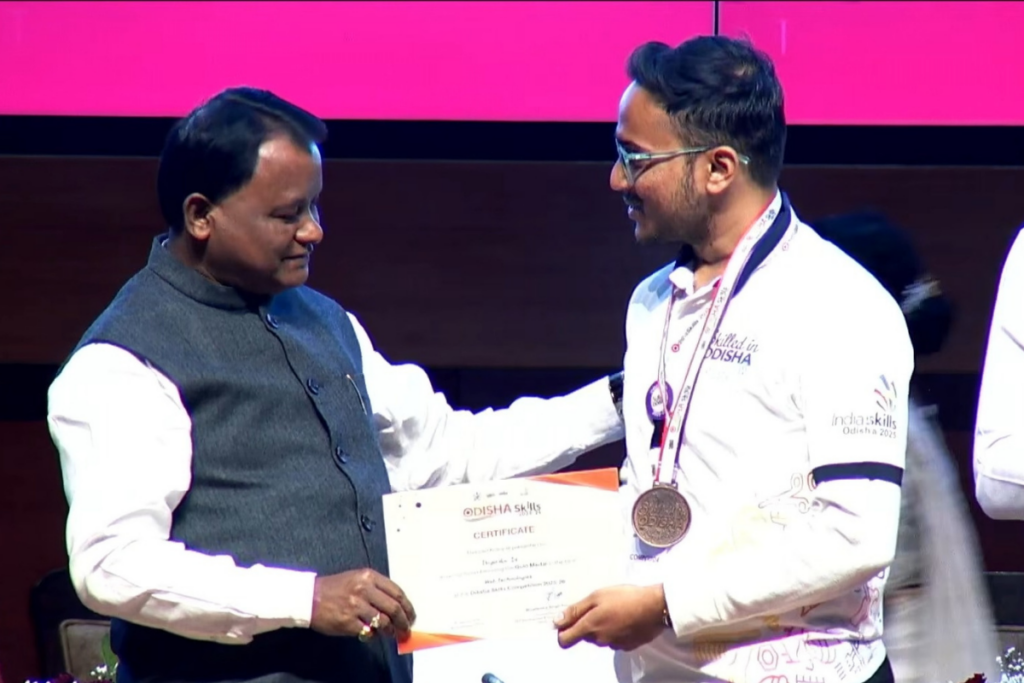 Priyanshu De received 1st prize in Odisha Skills in web technologies, received the reward from CM of Odisha, in Lok Seva Bhavan.