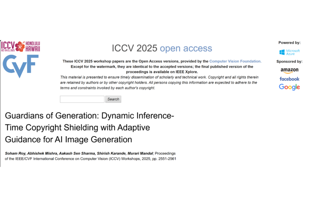 Soham Roy’s research paper on copyright protection for diffusion models was published to the U&ME Workshop at the International Conference of Computer Vision 2025, taking place in Hawaii, USA, in October 2025.