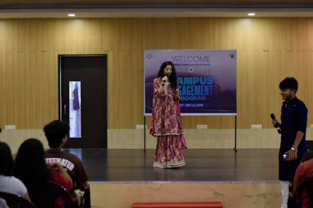 Tarushi Chauhan anchored the Student Induction Program 2025 at KIIT, welcoming and guiding the newly admitted students.
